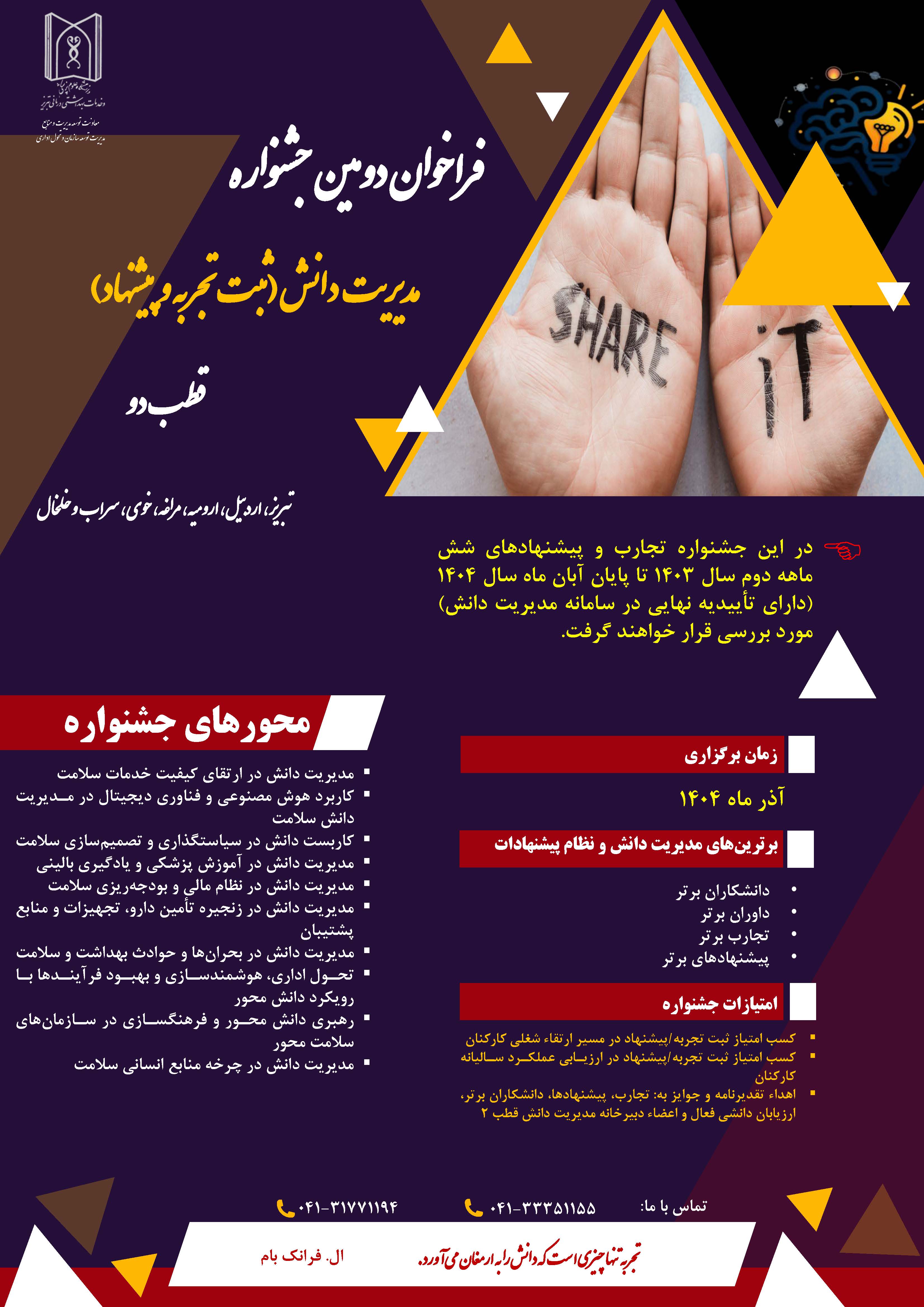 فراخوان برگزاری جشنواره مدیریت دانش در قطب 2 (آذرماه 1404)