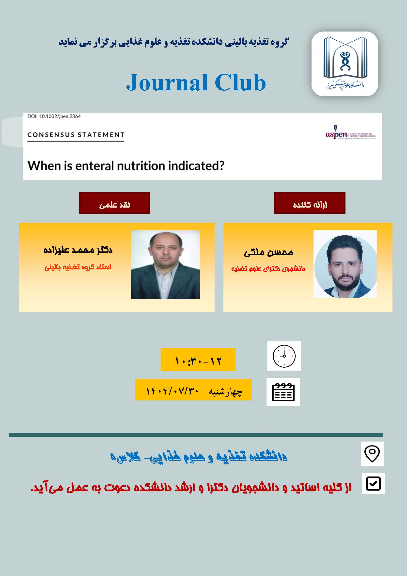 تاریخ انتشار : دوشنبه ۲۸ مهر ۱۴۰۴ تعداد بازدید کنندگان خبر : 86 زمان مطالعه : 1 دقیقه برگزاری ژورنال کلاب گروه تغذیه بالینی When is enteral nutrition indicated کد خبر : 96222 کپی تصاویر ارسال نظر ثبت