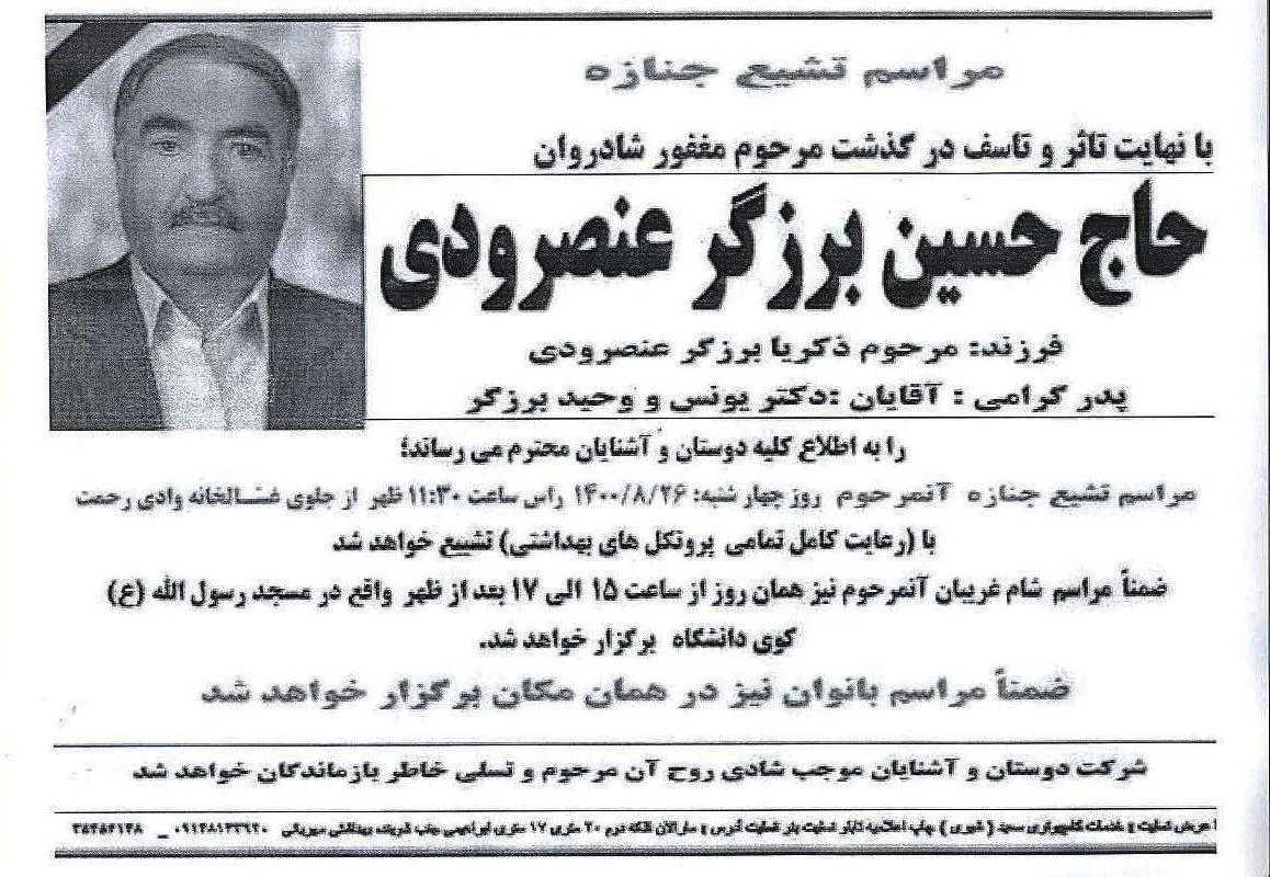 با نهایت تاثر و تاسف درگذشت عموی گرامیتان را تسلیت و تعزیت عرض نموده و از خداوند متعال برای روح آن عزیز سفرکرده رحمت الهی و حضور در سراپرده قرب الهی و برای جنابعالی و سایر بازماندگان محترم شکیبائی و صبر جمیل آرزومندیم.