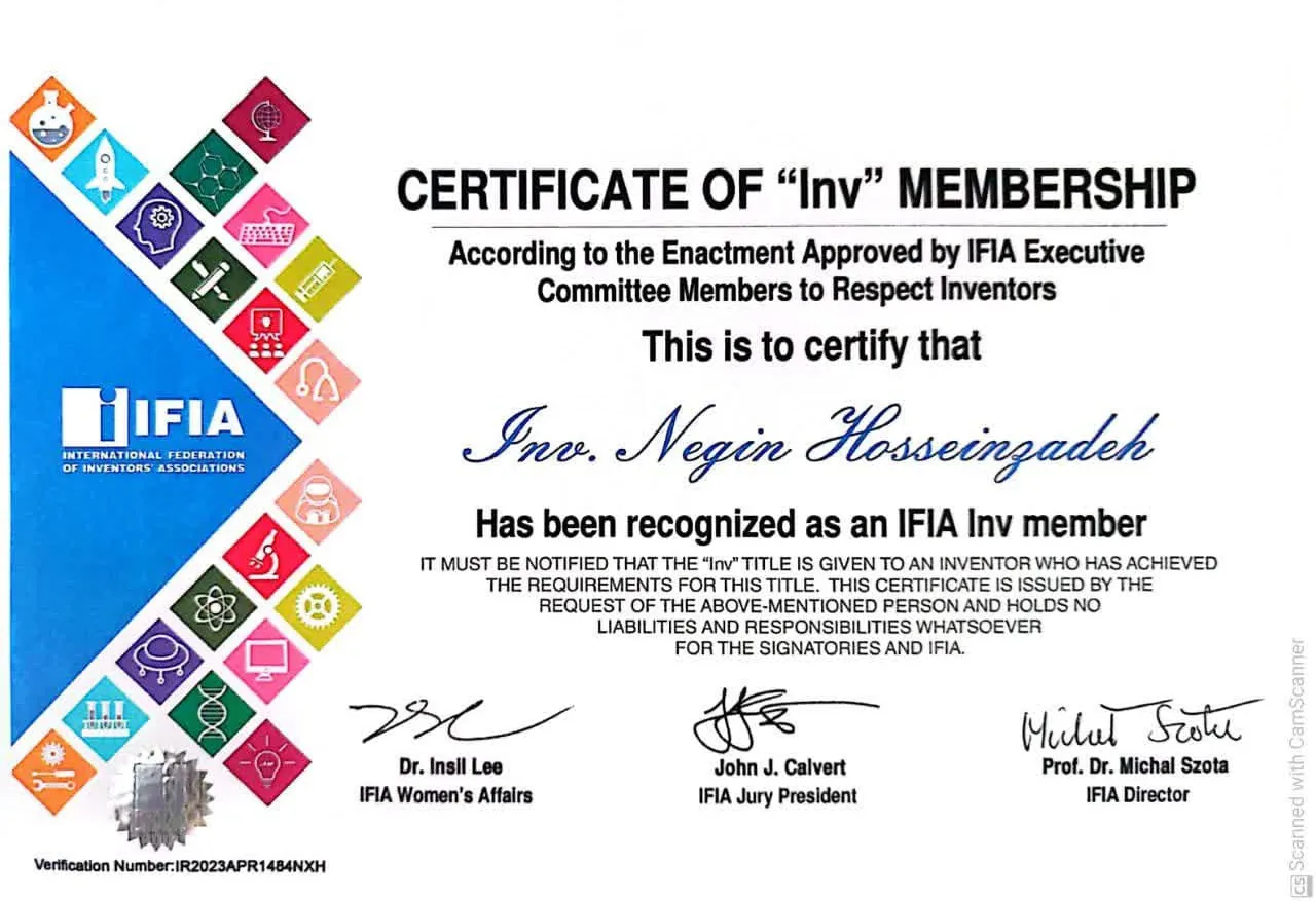 خانم نگین حسینزاده دانشجوی کارشناسی ارشد علوم و صنایعغذایی به راهنمایی آقای پروفسور دکتر عزیز همایونی¬راد استاد دانشگاه علوم پزشکی تبریز موفق به کسب مدال نقره اختراعات ژنو-سوئیس در سال 2023 شد.