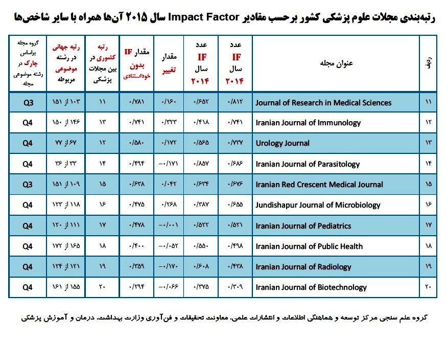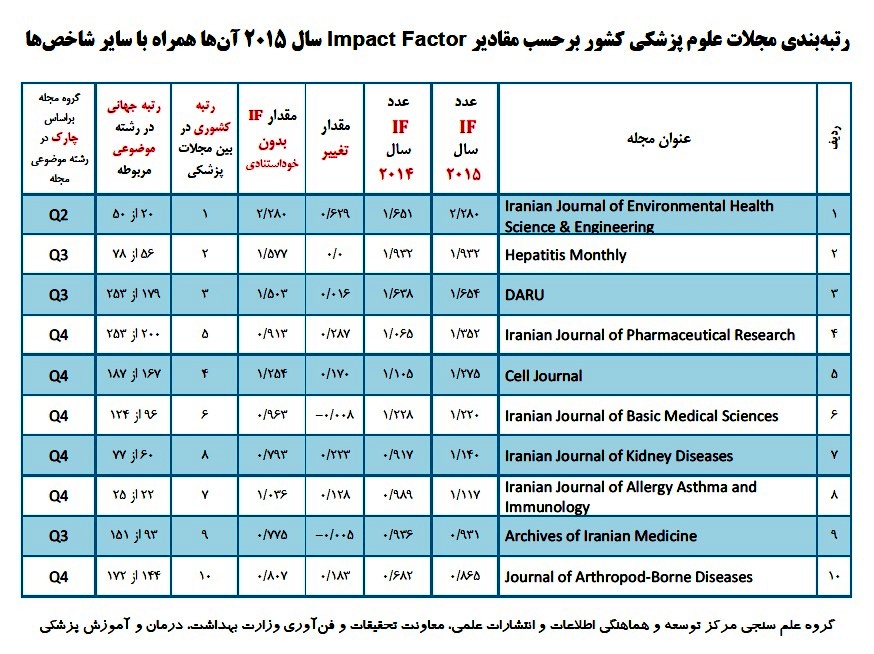 اعلام مقادیر جدید سال 2015 شاخص ضریب تأثیر مجلات نمایه شده در ISI