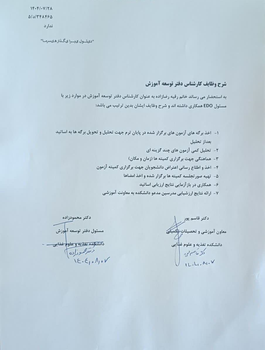 شرح وظایف کارشناس دفتر توسعه آموزش